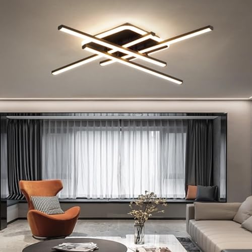 Comely Plafonnier LED, Luminaire Plafonnier 58cm 36W 4000LM, Lustre Salon Moderne, Lampe de Plafond de Pétale pour Salon Chambre Cuisine Salle à Manger, Lumière Blanche Chaude 3000K, Noir