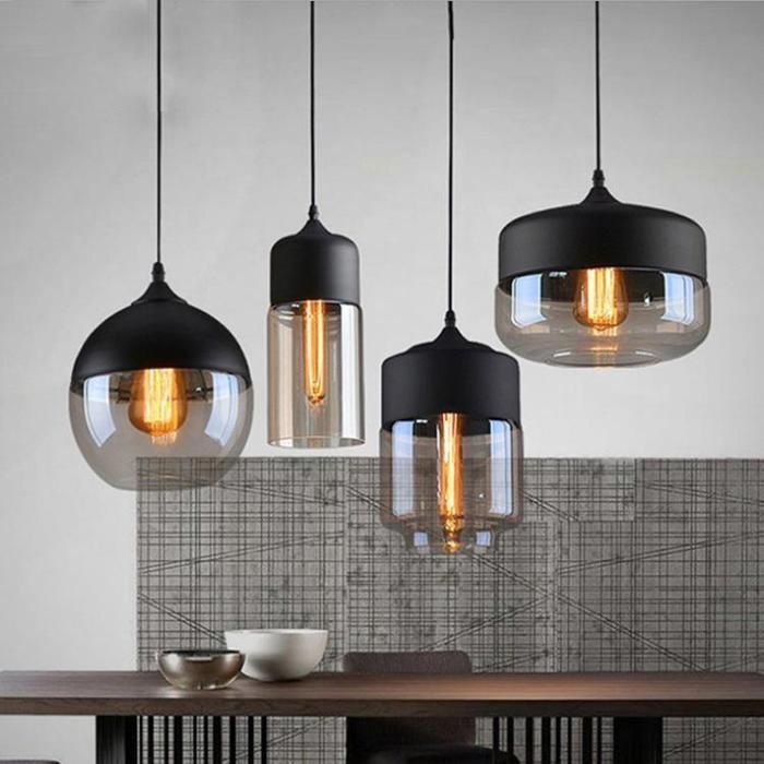 Lichtmaler Suspension Luminaire Verre e27 - Lustre Cuisine Noir Industriel Moderne Luminaires Intérieur Plafonnier Adulte Lampe Suspendue Salon Chambre Salle à Manger