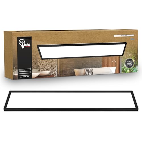 B.K.Licht - Panneau LED plat avec éclairage indirect, lumière blanc neutre, protection IP44, plafonnier salle de bain, lustre cuisine, lustre salon, 98 x 20 x 3 cm, noir