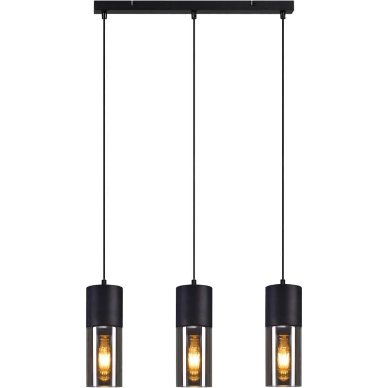 Lichtmaler Suspension Luminaire Verre e27 - Lustre Cuisine Noir Industriel Moderne Luminaires Intérieur Plafonnier Adulte 3 Lampe Suspendue Salon Salle à Manger, Base Droit