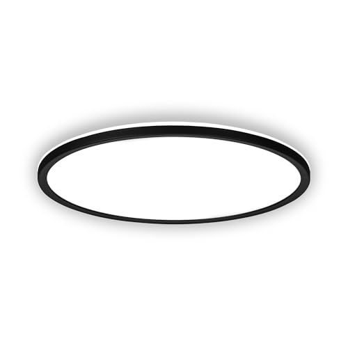 B.K.Licht - Panneau LED plat avec éclairage indirect, lumière blanc neutre, protection IP44, plafonnier salle de bain, lustre cuisine, lustre salon, 29 x 3 cm, noir