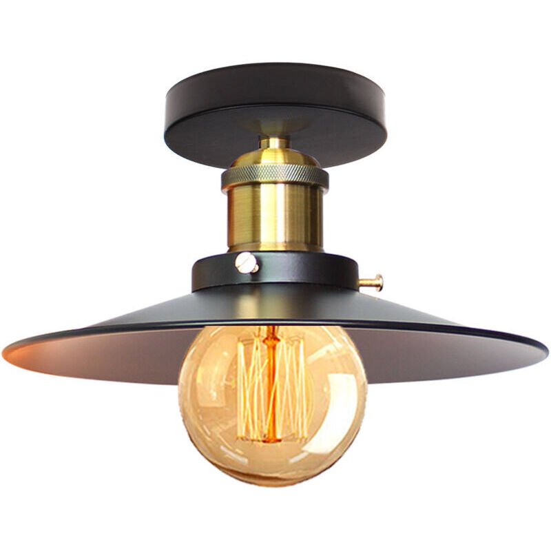 Vintage Plafonnier Industriel Retro en Métal Ø22cm Lustre Luminaire L'éclairage pour Chambre Salon Cuisine Couloir (Noir)