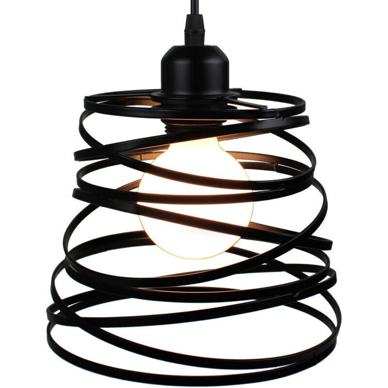 Goeco Plafonnier Industriel Vintage, Retro Lustre Suspension Luminaire E27 avec Abat-jour en Cage Spirale, Lampe de Plafond Noir pour Cuisine, Balcon, Couloir, Cabine, Diamètre 18CM