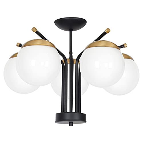 Homemania Lustre, Métal, Verre, Noir, Or, Blanc