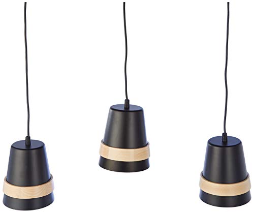 Homemania 8681847095552 Venise Lampe Suspendue Noire pour Plafond, Salon, Bureau Lustre, Pendentif, lumière, Noir, Bois, métal, Bois, 60 x 14 x 100 cm