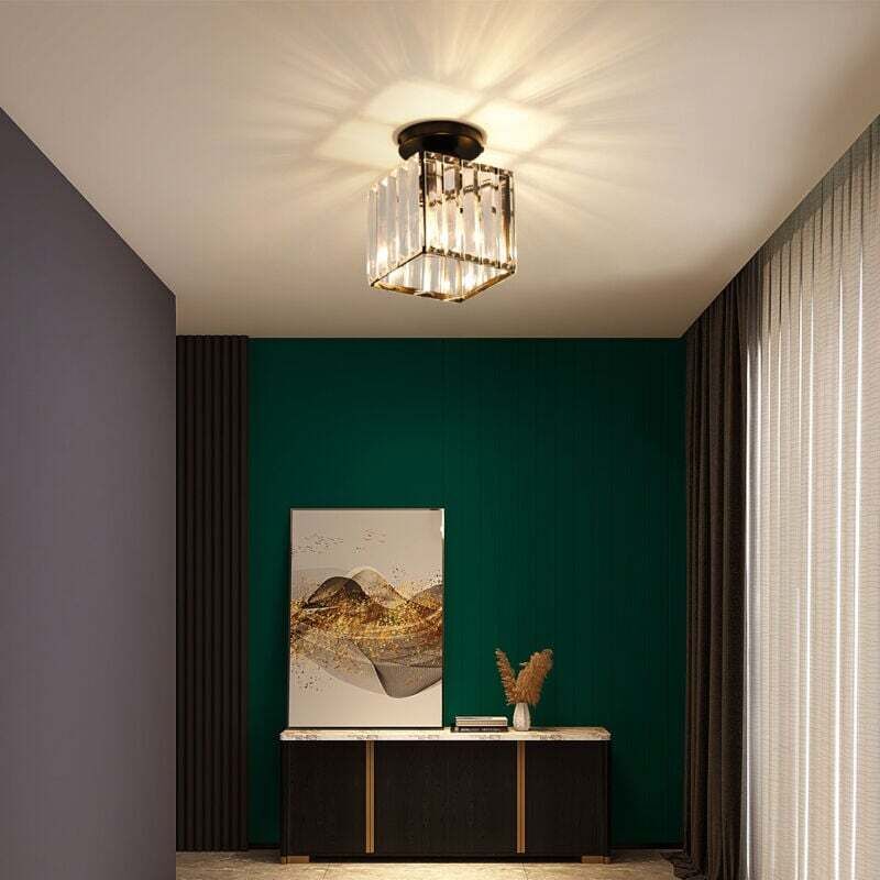 E27 Plafonnier moderne, mini plafonniers créatifs, plafonnier lustre, pour couloir, escaliers, entrée, chambre, salon, bar, restaurant,Café,magasin de vêtements,plafonnier en cristal (Carré/noir)