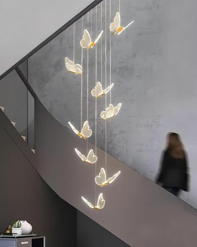 Lustre d'escalier LED pour entrée, Salon, plafonnier Haut, Suspension Papillon Acrylique, Grand luminaire, éclairage Moderne pour Salle à Manger et Couloir (Taille : 9 LED, Couleur : Blanc)