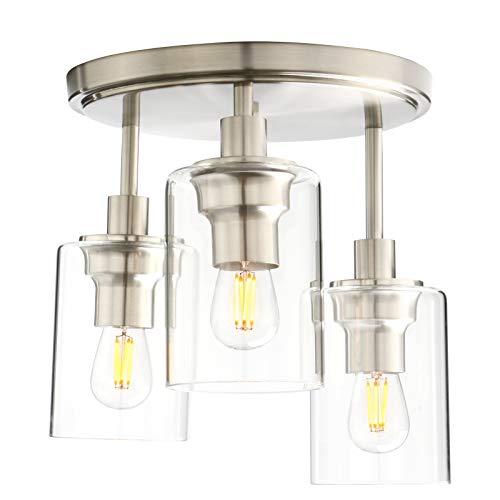 Pathson Industrial 3 lumières Plafonnier semi-affleurant, Proche du plafond Luminaire avec abat-jour en verre, Lustre pour entrée Loft Cuisine Bar Salle à manger
