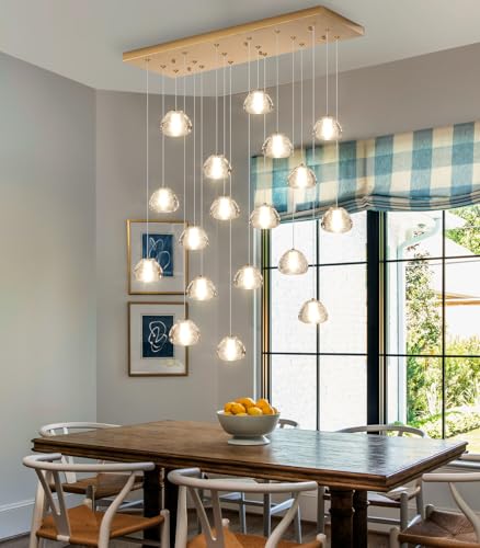 SADRYHFG Grand Lustre en Cristal pour entrée, Hall d'entrée à 2 étages, luminaire Suspendu Rond en Forme de Goutte de Pluie pour Salle à Manger, Salon, Chambre à Coucher et îlot de Cuisine