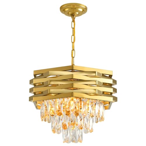 Goeco Plafonnier Or, E27 Lampe de Plafond en Cristal Moderne, Lustre Industriel Vintage avec Abat-jour en forme de Cage pour Entrée Couloir Chambre Salon, Ampoules non incluses