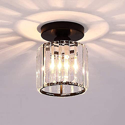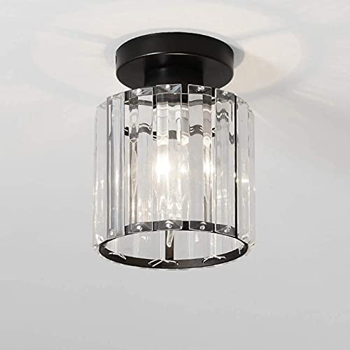 HJCKJSMEOU Mini plafonnier en Cristal, Lampe Moderne Ronde avec Abat-Jour Transparent, Douille E27, Lustre LED pour Couloir, entrée, Balcon, Noir - Non