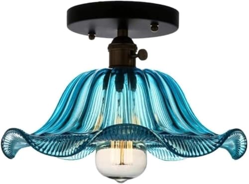 Plafonnier Rétro En Verre Semi-Permanent Style Postmoderne Abat-Jour Fleuri Lustre Bleu pour Couloir Entrée Ou Porche de Maison de Campagne