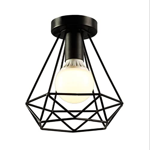 E27 Retro Plafonnier en Métal Noir Cage, Vintage Industrielle Suspension Luminaire, Suspension Plafonnier Fer forge, Lustre pour couloir, entrée, allée, porche, chambre, sous sol etc. (B)