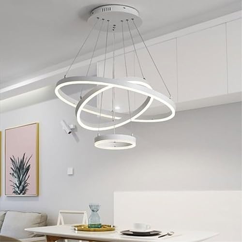 Lustre LED moderne à 3 anneaux, plafonnier LED 78 W avec hauteur réglable, 3000 K/4000 K/6000 K, lampe suspendue, lustre pour hall d'entrée, cuisine, salon, chambre à coucher, couloir, fabriqué