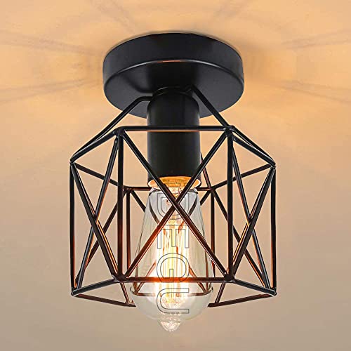 iDEGU Plafonnier Industriel Rétro en Fer 15CM Cage Design Vintage Abat-jour Luminaire Lustre pour Cuisine Entrée Chambre Café (Noir, Hexagone)