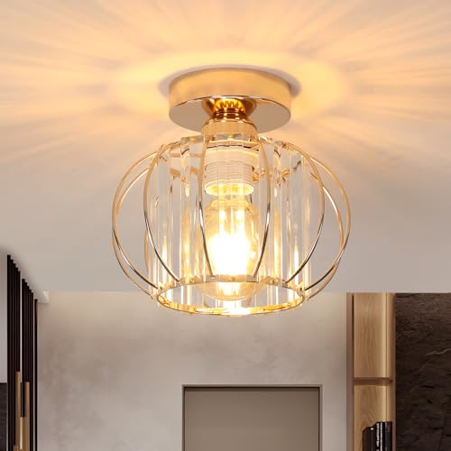Comely Plafonnier Doré en Cristal, Lustre Couloir Moderne E27, Luminaire Plafonnier Cristal pour Entrée, Chambre, Salle à Manger