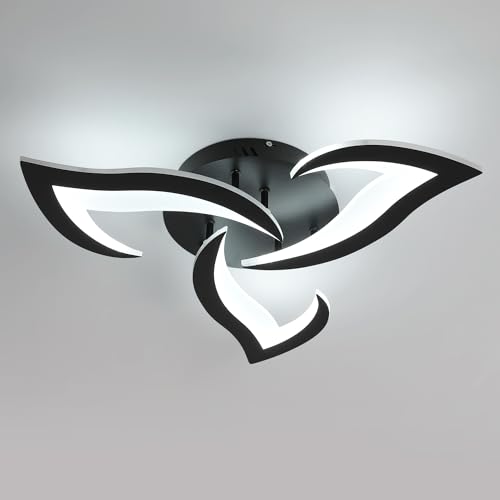 Plafonnier Led Moderne, 36W 4000LM lampe de plafond en acrylique, Créatif Pétales Design lustre led noir pour Chambre, Salon, Salle à Manger, Cuisine, Couloir, Lumière Chaude 3000K