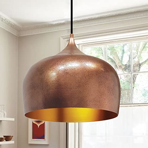 bamyum Suspension Luminaire Moderne en Bois et Metal, Lustre Salle à Manger Ronde de 30 cm, Lustre Cuisine E27 en Métal, Plafonnier, Lampe pour Chambre, Salon, Couloir, Ton Cuivré