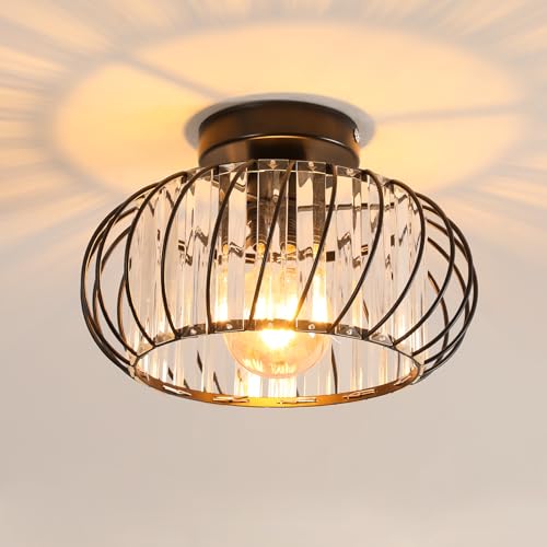 Goeco Plafonnier Cristal Moderne, E27 Mini Lustre en Cristal Métal Noir, Plafonnier Semi Encastré pour Cuisine Salle à Manger Couloir Porche Salon