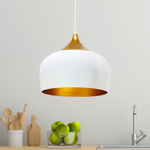 bamyum Kreis Suspension Luminaire Moderne et Metal, Lustre Salle à Manger Ronde de 30 cm, Lustre Cuisine E27 en Métal, Plafonnier, Lampe pour Chambre, Salon, Couloir, Blanc