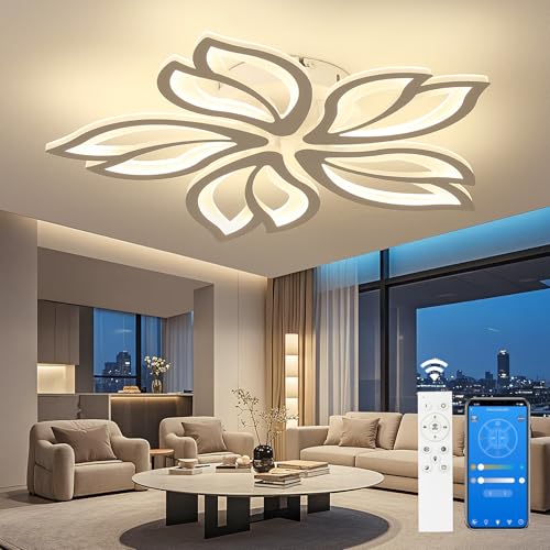 Comely Plafonnier LED, Luminaire Plafonnier 60W 6750LM, Lustre Salon Moderne, Lampe de Plafond de Pétale pour Salon Chambre Cuisine Salle à Manger, Lumière Blanche Chaude 3000K, Dia 60cm, Blanc