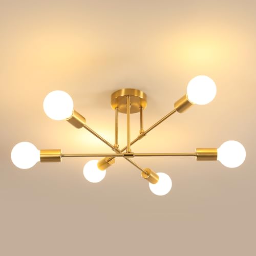 Goeco Plafonnier Lustre Industriel, E27 Plafonnier Or Moderne 6 Lumières, Lampe de Plafond Vintage en Metal pour Salon, Chambre, Cuisine, Bar, Café (Sans Ampoules)