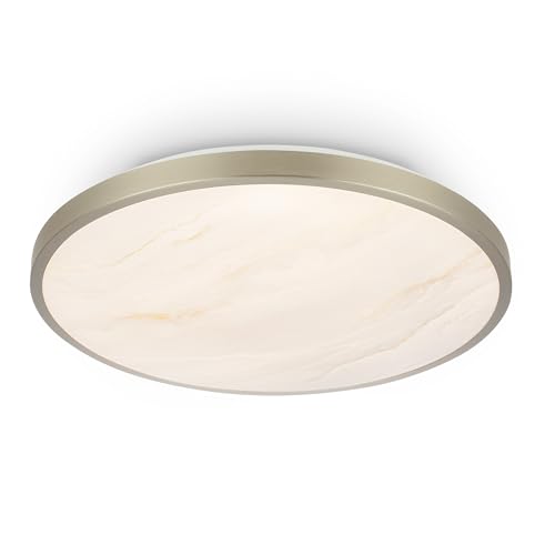 BRILONER - Plafonnier LED avec éclairage blanc chaud 3000 K, 17,5W, 2400lm, diffuseur décoratif en albâtre, lustre salon, lustre cuisine, plafonnier LED salon, 33 x 6 cm, nickel mat