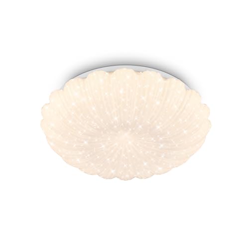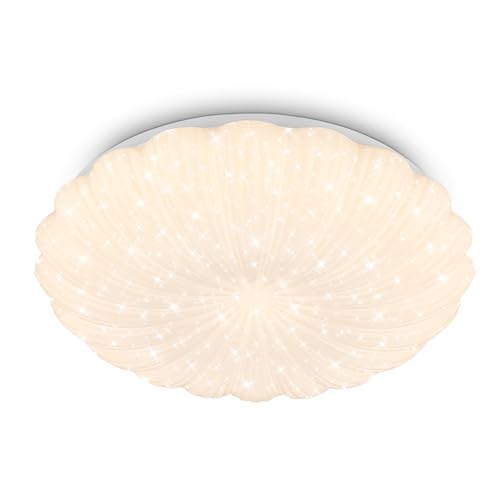 BRILONER - Plafonnier LED avec effet ciel étoilé, éclairage blanc chaud, bord ondulé décoratif, lustre salon, lustre cuisine, plafonnier LED salon, 28,5 x 7,5 cm, blanc