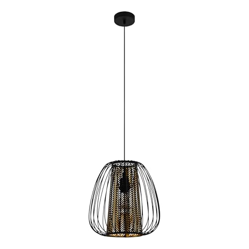Eglo Suspension luminaire Curasao, lustre chambre, plafonnier salon ou salle à manger en métal et textile noir, intérieur doré, douille E27