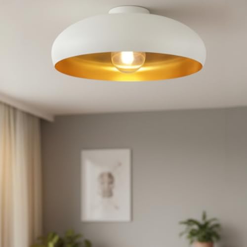 bamyum Plafonnier en Métal de 40 cm, Lampe Plafond Luminaire pour Cuisine, Salle à Manger, Blanc, Bureau, Lustre Salon Vintage, Plafonnier Chambre, Lampe Plafond E27, Luminaire