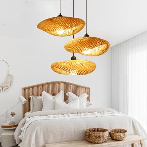 DLGLOLIN Suspension Luminaire en Bambou Tressée Lampe Suspendue Boho Style Intérieur Lustre Salon en Rotin Vintage Bois Plafonnier pour Chambre Couloir Cuisine Café