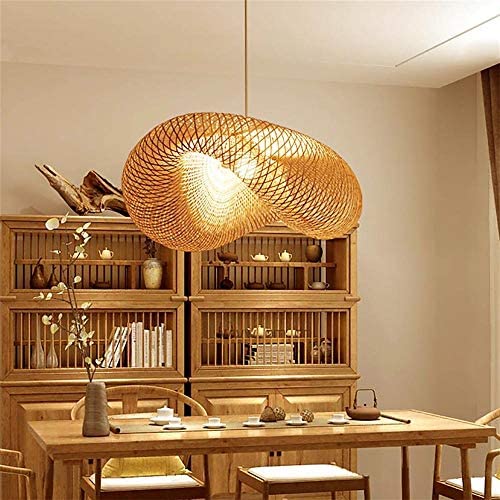 Lustre E27 Suspension Tissage Intérieur Vintage Bambou Naturel Luminaire Plafonnier Suspendue Hauteur Réglable Créations Garden Restaurant Salon Chambre Bambou Café Rotin Vague Lampes