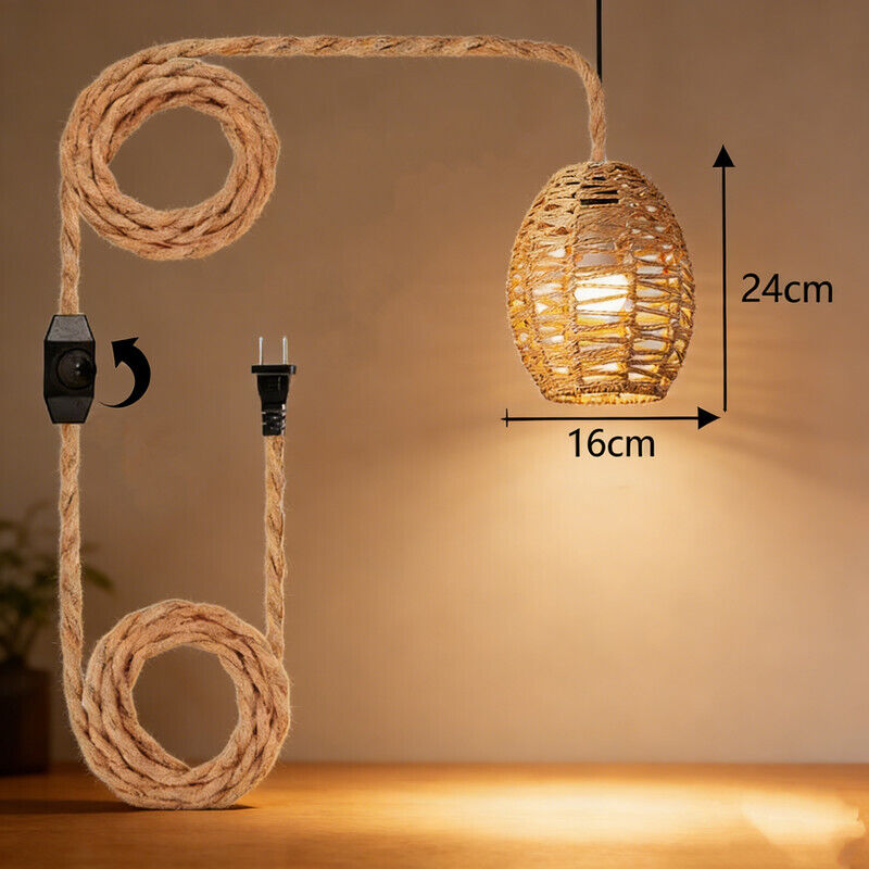 Lustre rétro en rotin, lumière chaude, plafonnier moderne, luminaire décoratif, idéal pour le salon, la chambre et les maisons d'hôtes.