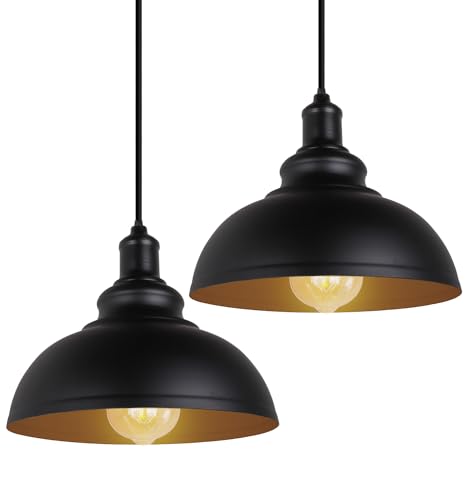 PETITES ECREVISSES 2 Packs Suspensions Luminaires Vintage Lustre Industriel Métal Plafonniers Abat-jour Ø29cm Lampe E27 Décoration d'intérieur Noir