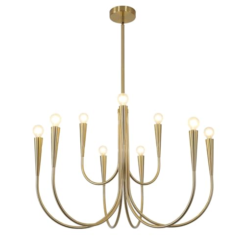 KCO Lustre Réglable en Hauteur, 9-Branches Lustres Salon Chambre Cuisine, Douilles E14