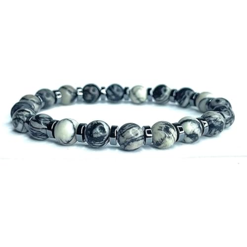 Vera Mentis Bracelet en Jaspe Picasso Noir Naturel – Perles 8 MM – Bijou Unisexe Élégant & Intemporel – Protection, Créativité & Ancrage – Idée Cadeau Luxe pour Homme
