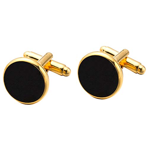 Boutons de manchette ronds classiques en or avec zircon noir, accessoires de costume de mariage de luxe pour homme, cadeau d'affaires