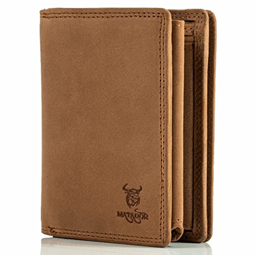 MATADOR Porte Monnaie Homme Cuir #Vienne Mini Portefeuille Homme avec élégante Boîte Cadeau, Wallet de Luxe avec RFID, Petit Porte Monnaie avec de Nombreux Compartiments à Cartes en Marron Vintage