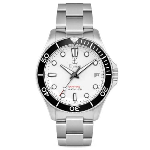 Elysian Montre Homme Voyager | Boîtier Acier Inoxydable 42mm, Bracelet Acier | Mouvement Quarz VJ32 | Verre Saphir Complet | Étanchéité 10ATM | Lume BGW9 | Boîte Cadeau Luxe, Cadeau Homme