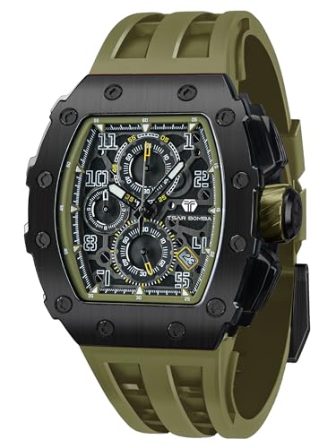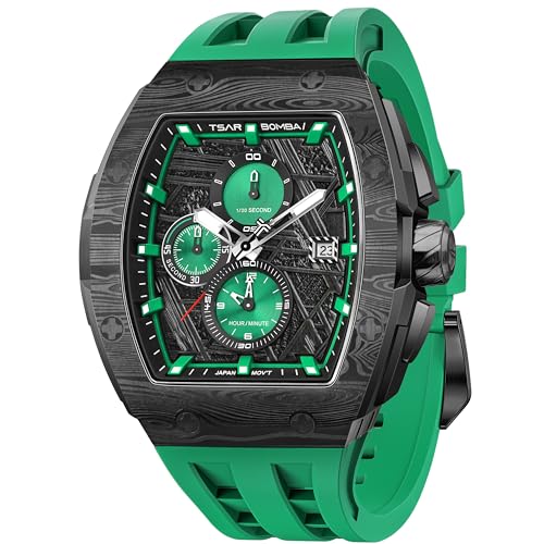 TSAR BOMBA Montre de luxe pour homme - Étanche jusqu'à 50 m - Analogique - Chronographe - Calendrier - Date - Pour le travail - Grand cadran carré - 8211QII - Vert