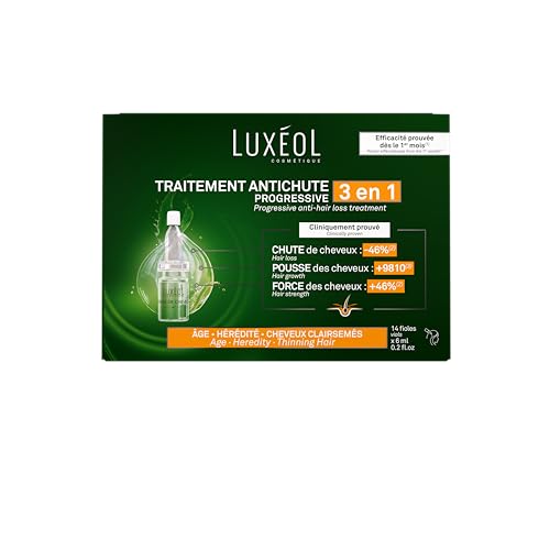 Luxéol - Traitement Antichute Progressive 3 En 1 - Favorise La Pousse & Diminue La Perte de Cheveux - Densifie La Chevelure - Fabriqué En France - Programme Cheveux 1 Mois - 14 Fioles De 6 ml