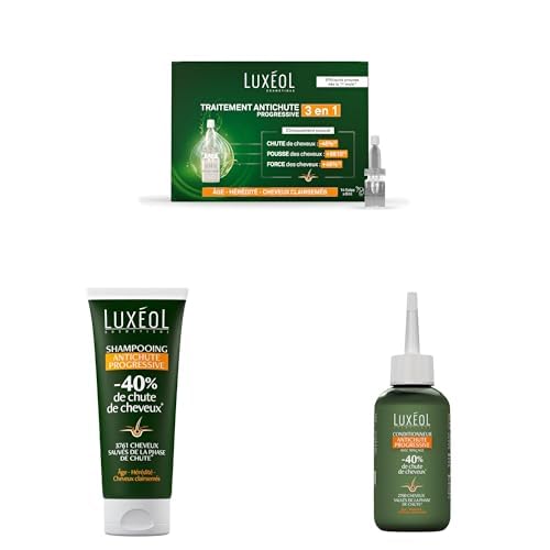 LUXEOL - Routine Traitement Antichute Progressive - Diminue La Chute De Cheveux - Shampooing + Conditionneur + Sérum - Cliniquement Prouvé - -53% de Chute de cheveux - Fabriqué En France