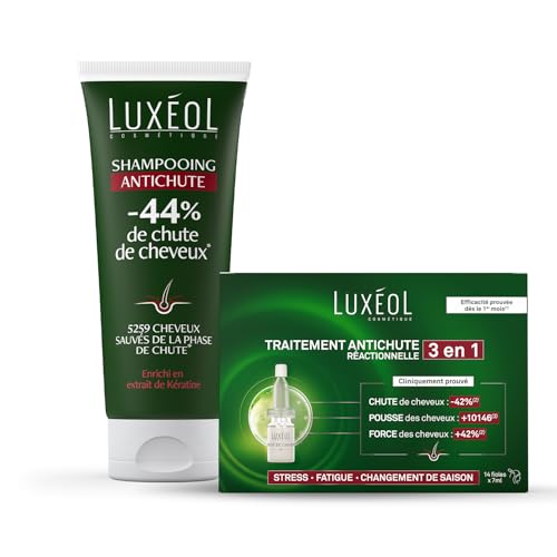 LUXEOL - Routine Chute Réactionnelle 3en1 - -42%(1) Chute De Cheveux & Stimule La Pousse - Traitement Antichute Réactionnelle 3 en 1 (14 x 7 ml) + Shampooing Antichute (200 ml) - Extrait Kératine