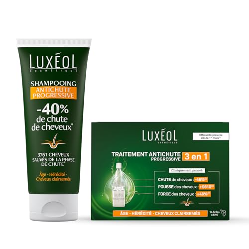 LUXEOL - Routine Chute Progressive - Chute des Cheveux - Traitement Antichute Progressive 3 en 1 (14 x 7 ml) + Shampooing Antichute Progressive (200 ml)