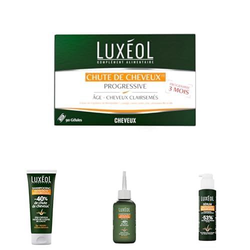 LUXÉOL - Routine Chute de cheveux Progressive - Shampooing + Après-Shampoing + Complément alimentaire - Agit sur Chute de Cheveux - Favorise la fortification