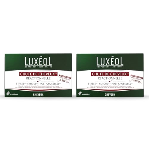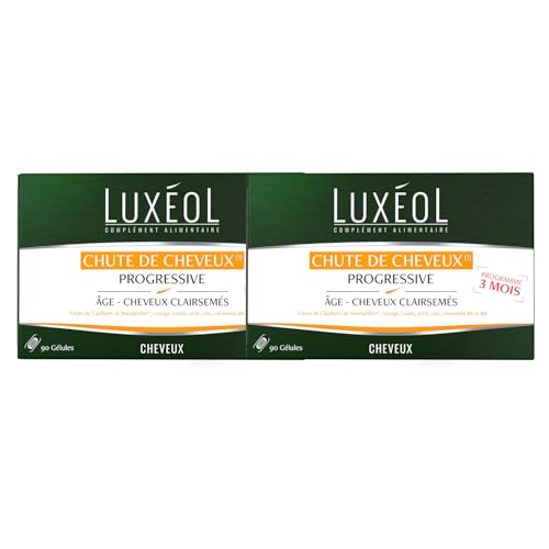 Luxéol - Chute De Cheveux Progressive - Complément Alimentaire - À Base De Capillaire de Montpellier, Plantes, Zinc & Vitamines B6 & B8 - Fabriqué En France - Programme 3 Mois - 90 Gélules (Lot de 2)