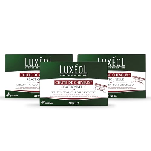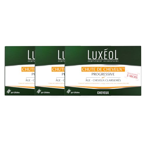 Luxéol - Chute De Cheveux Progressive - Complément Alimentaire - À Base De Capillaire de Montpellier, Plantes, Zinc & Vitamines B6 & B8 - Fabriqué En France - Programme 3 Mois - 90 Gélules (Lot de 3)