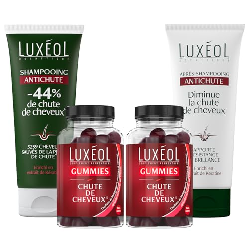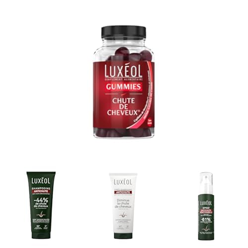 LUXEOL- Routine Gummies Anti-Chute In & Out- Gummies Chute de Cheveux + Shampooing & Après-Shampooing Anti-Chute + Spray Anti-Chute Réactionnelle- Aide à Réduire la Chute- Fabriqué en France
