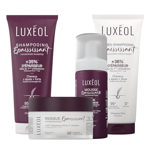 LUXEOL - Routine Epaississante In & Out - Cheveux Normaux - +36% D'Epaisseur Immédiatement* - Shampooing + Après-Shampoing + Sérum + Complément alimentaire - Fabriqué en France