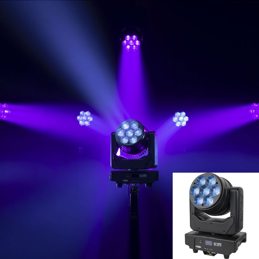 Showtec Shark Wash One - Projecteur automatique - 7 LEDs 12W RGBWA UV - Lyre Wash - Lux 3350 @ 2m